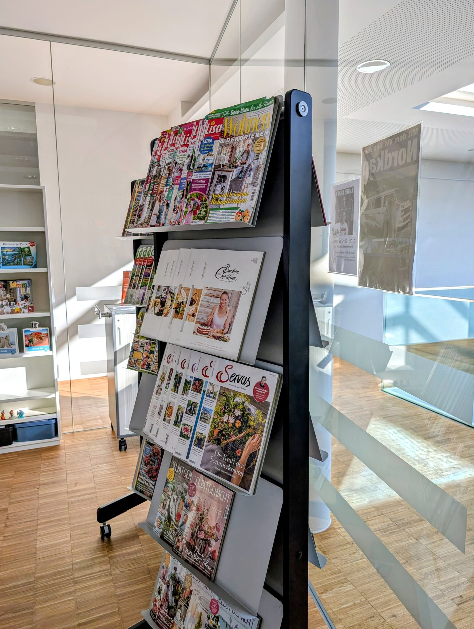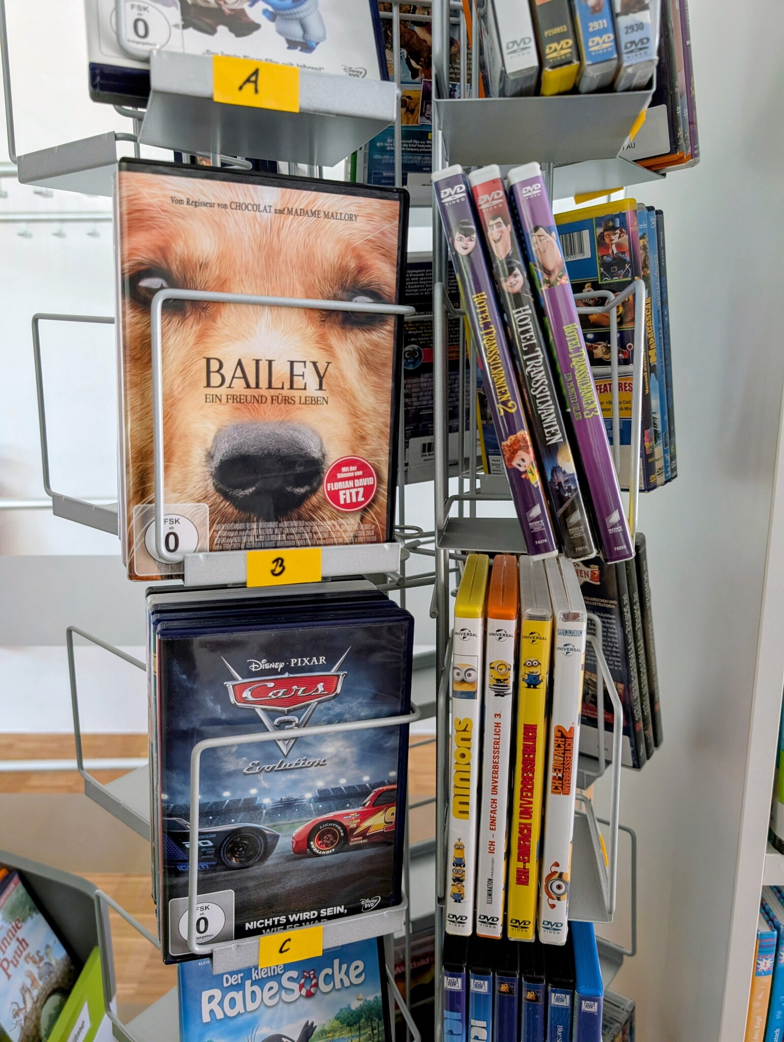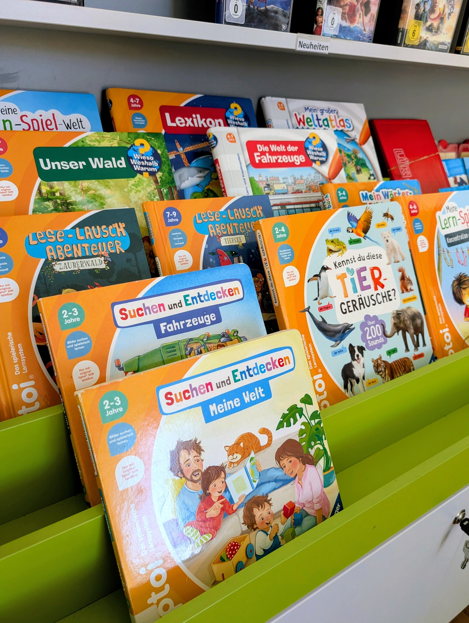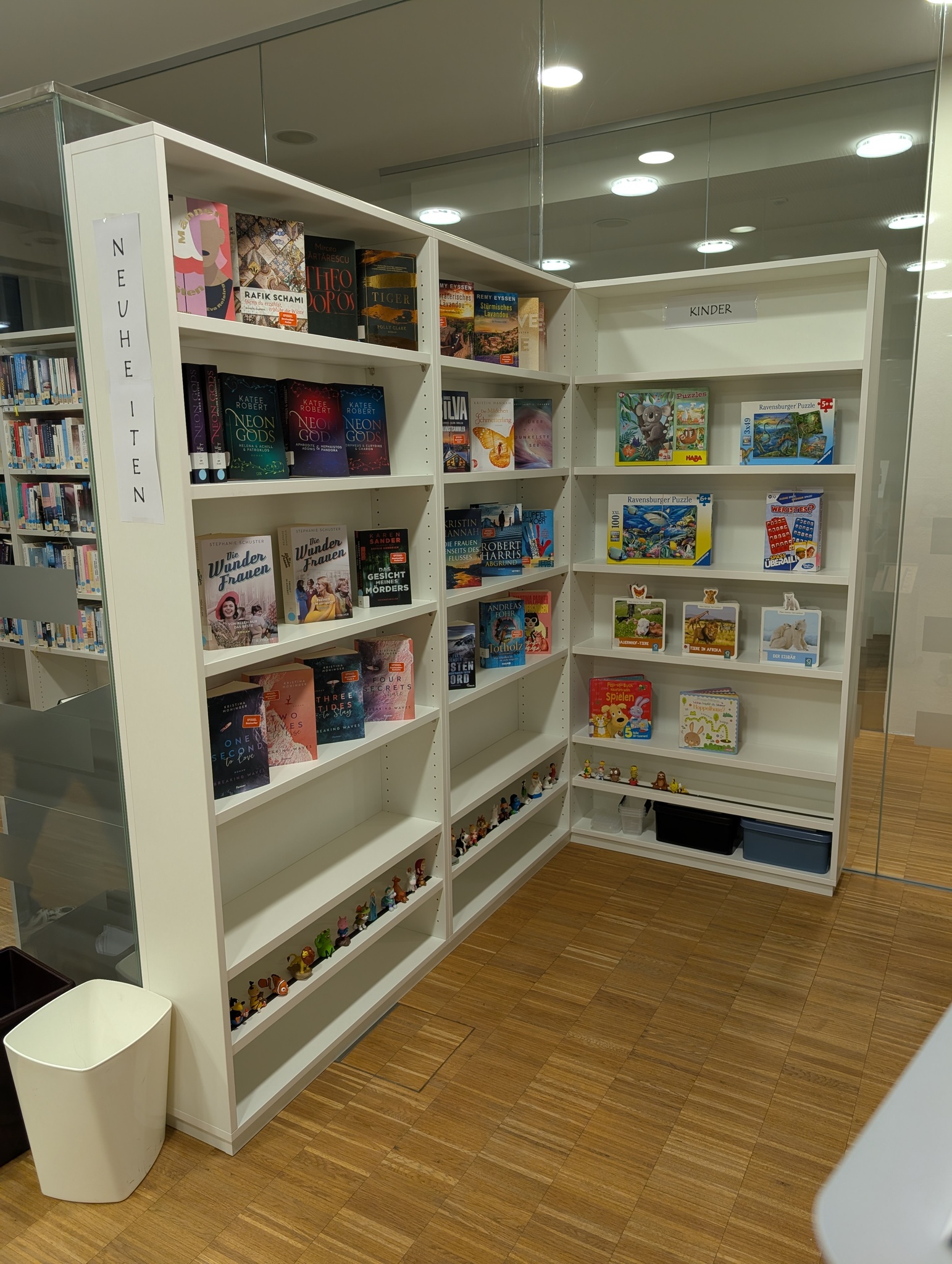 In unserer Bibliothek erwartet Sie eine große Auswahl an spannenden und aktuellen Medien: Romane und Sachbücher für Erwachsene, DVDs, Kinder- und Jugendbücher, Comics, Zeitschriften sowie Brettspiele, Tonies und Tiptoi-Bücher.